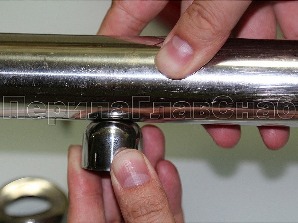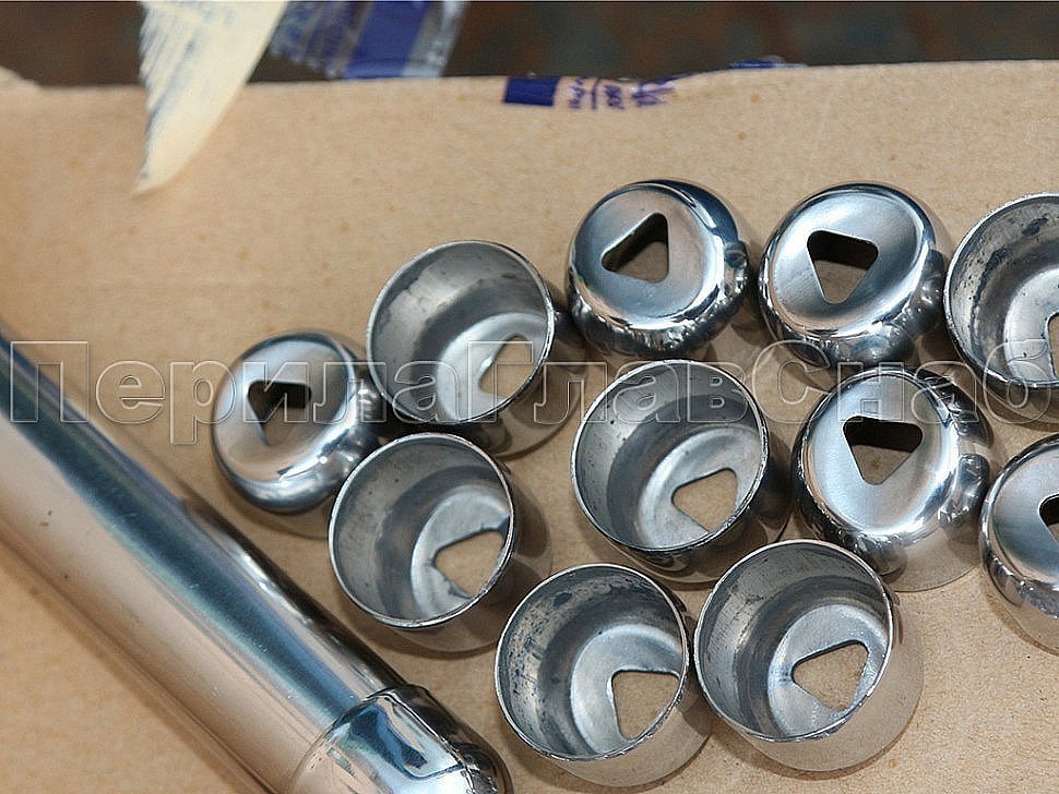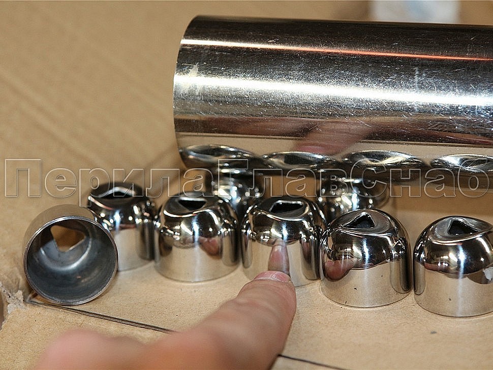 Наконечник штампованный с отверстием (СПС) прямой 90° на трубу диаметром 25 мм, для поручня диаметром 38.1-50.8 мм. Деталь полированная, нержавеющая. Марка стали - AISI 201