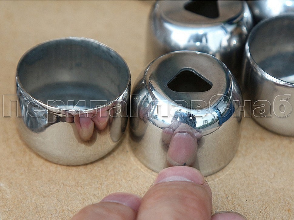 Наконечник штампованный (СПС) прямой 90° на трубу Ø25 мм, для поручня Ø38.1 мм, полированный, нержавеющий, AISI 201, k071-3