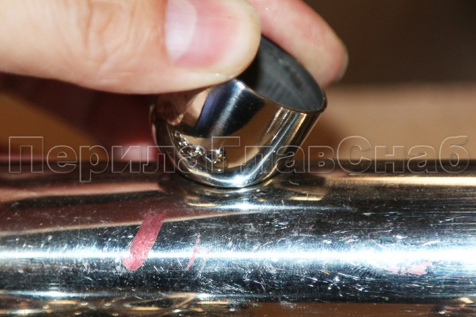 Наконечник штампованный (СПС) косой 30° на трубу Ø25 мм, для поручня Ø38.1 мм, полированный, нержавеющий, AISI 304, k072