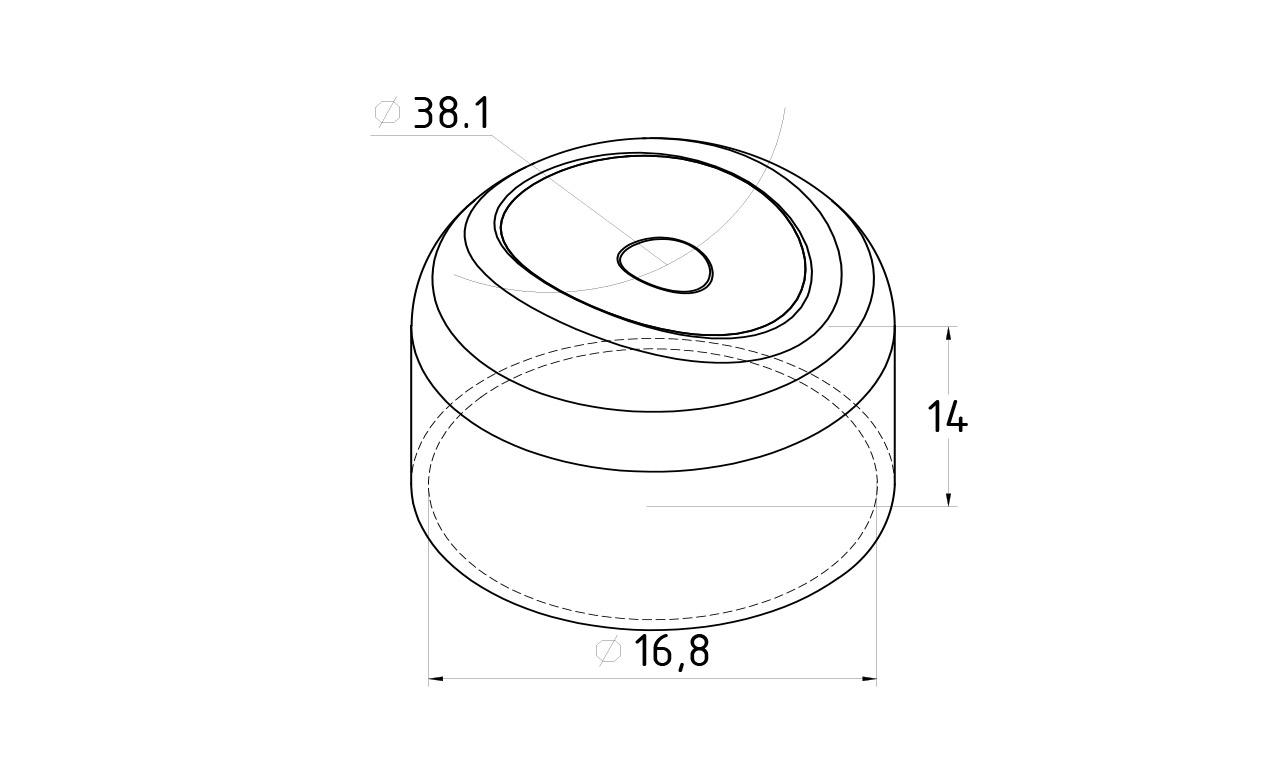 Наконечник штампованный (СПС) прямой 90° на трубу Ø16 мм, для поручня Ø38.1 мм, полированный 400Grit, нержавеющий AISI 304, k211-2
