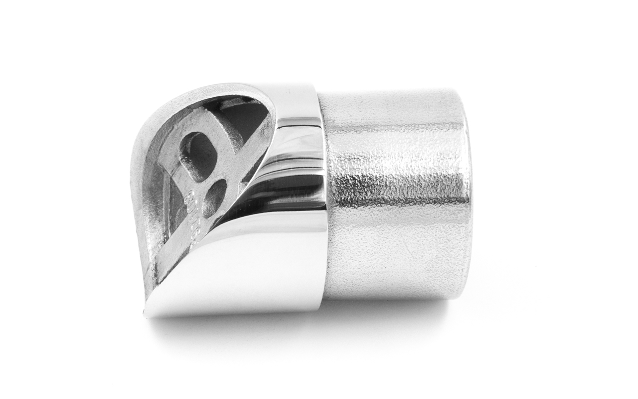 Наконечник седловина косая 30° на стойку Ø38.1 мм, под поручень Ø38.1 мм, литая, полированная, AISI 304, k045-2