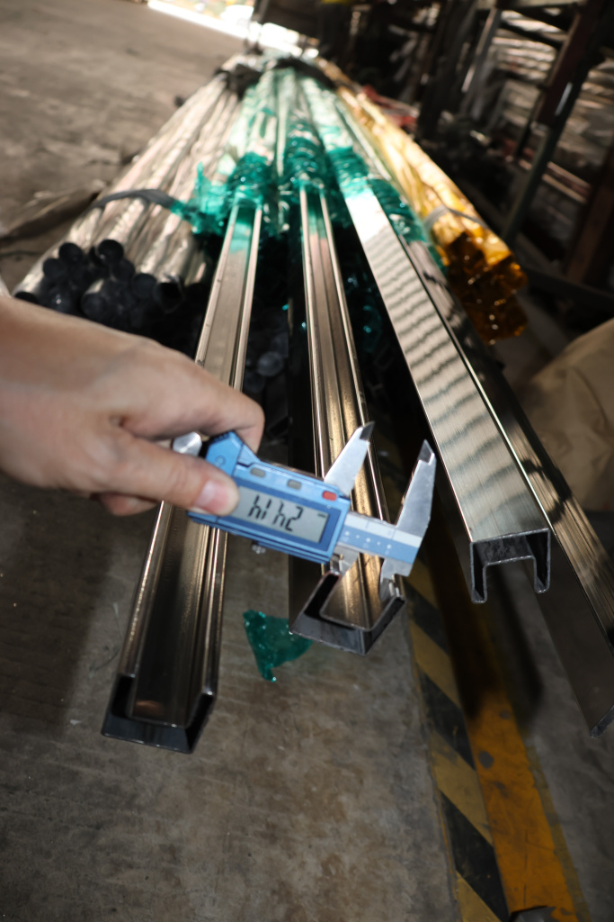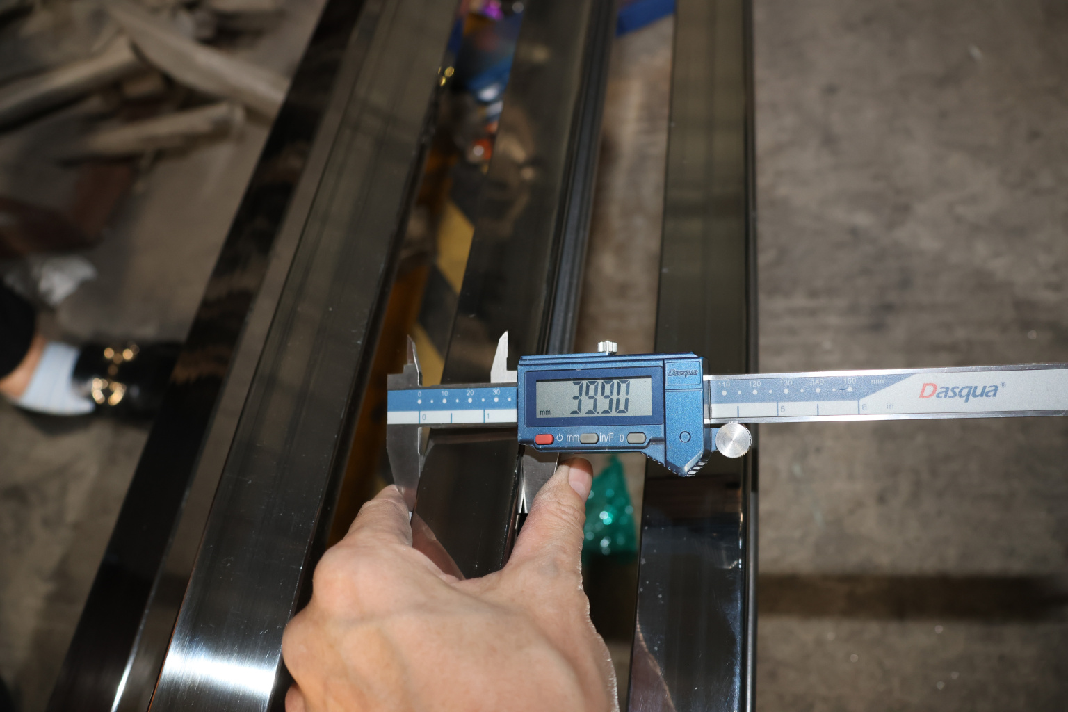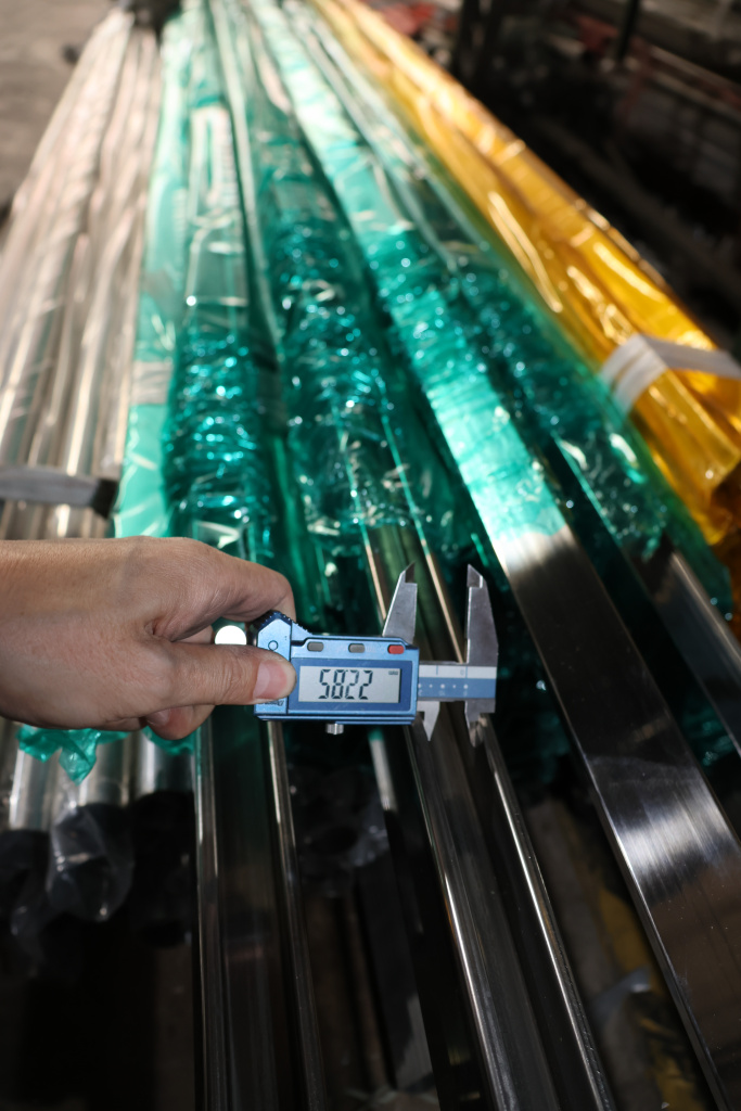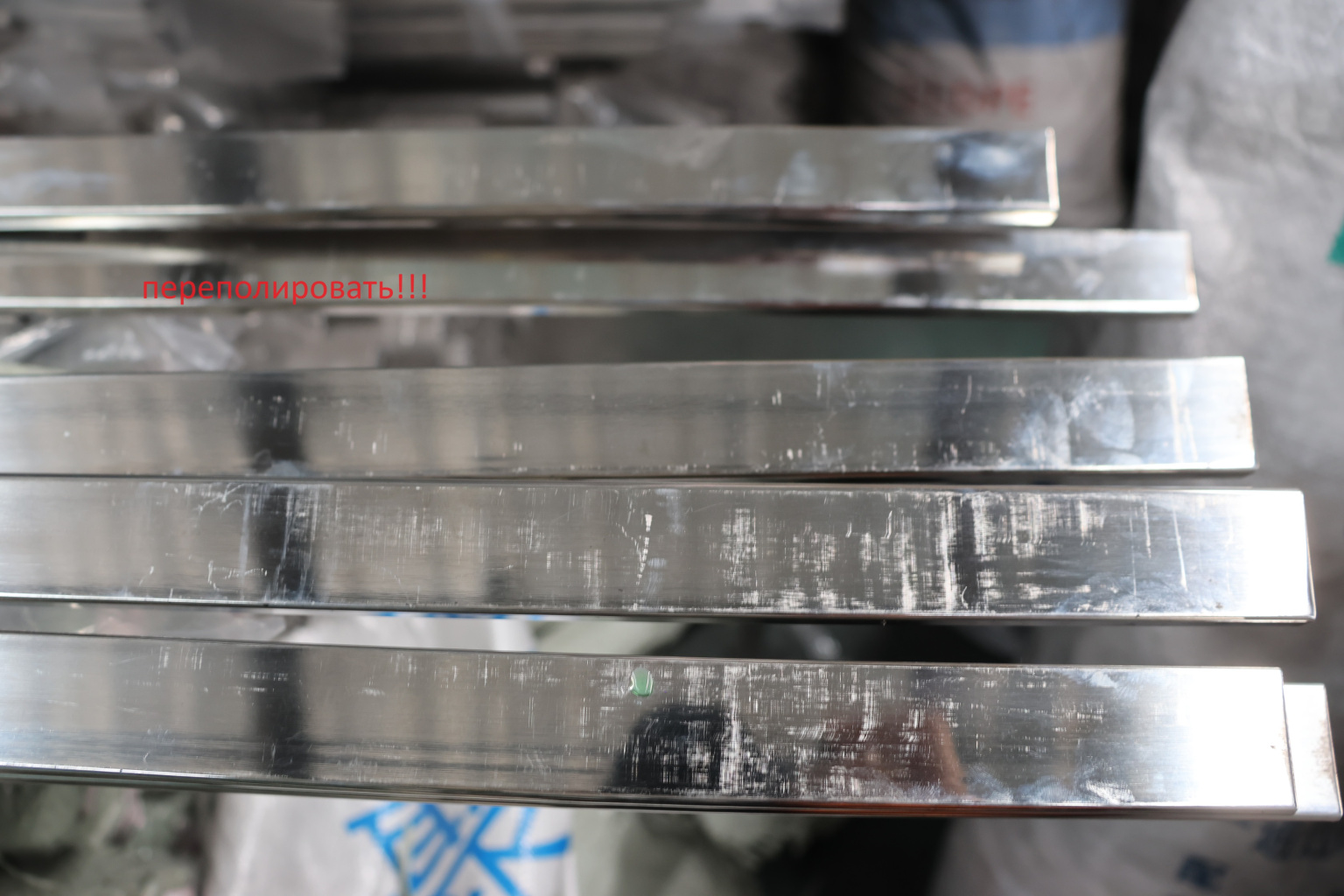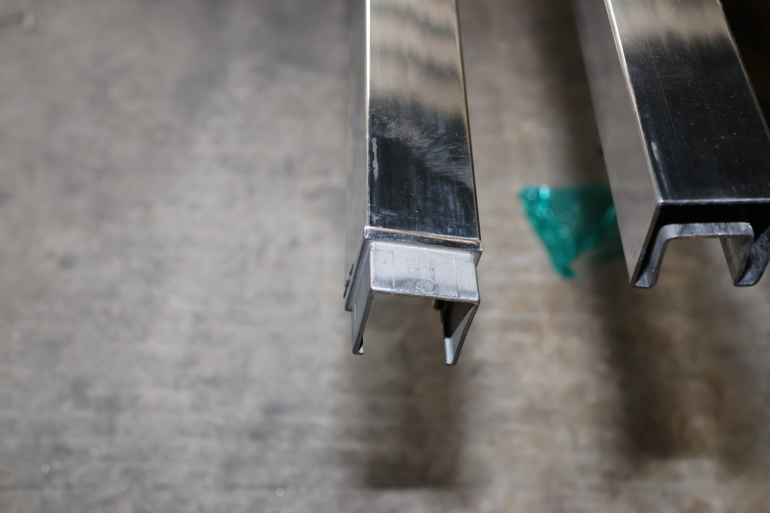 Труба 40х40 мм с пазом 24х24 мм под стекло, полировка, AISI 304 #600