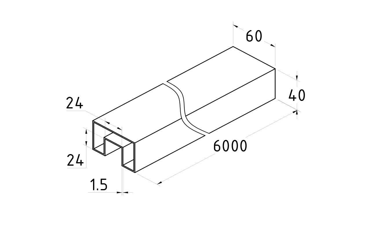 Труба, 40х60, с пазом 24х24 мм под стекло, шлифованная (AISI 201) k824-4