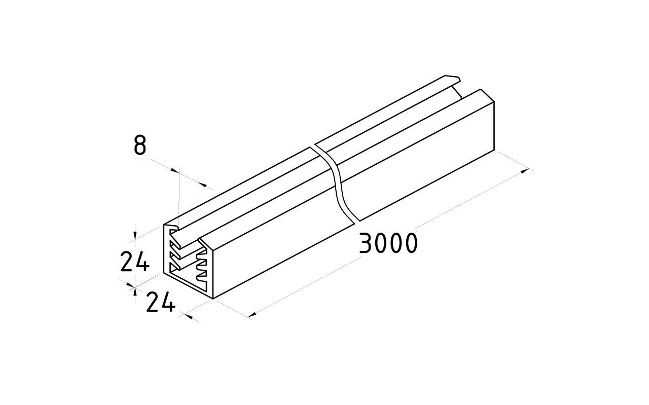 Уплотнитель в поручень с пазом 24х24 для стекла 8 мм или триплекса 4+4 мм, EPDM (палки 3 м)