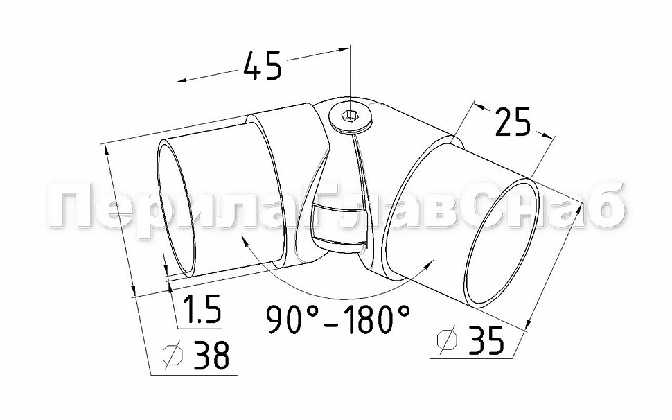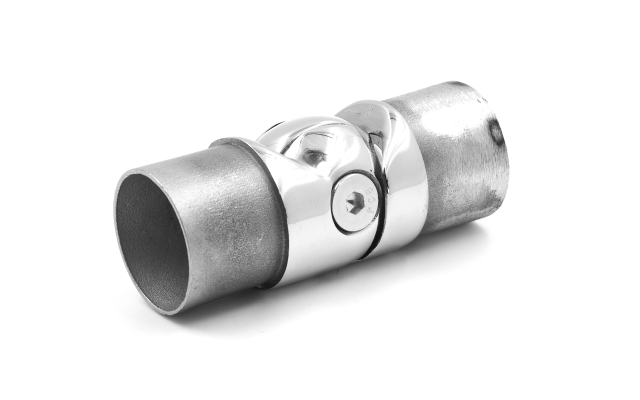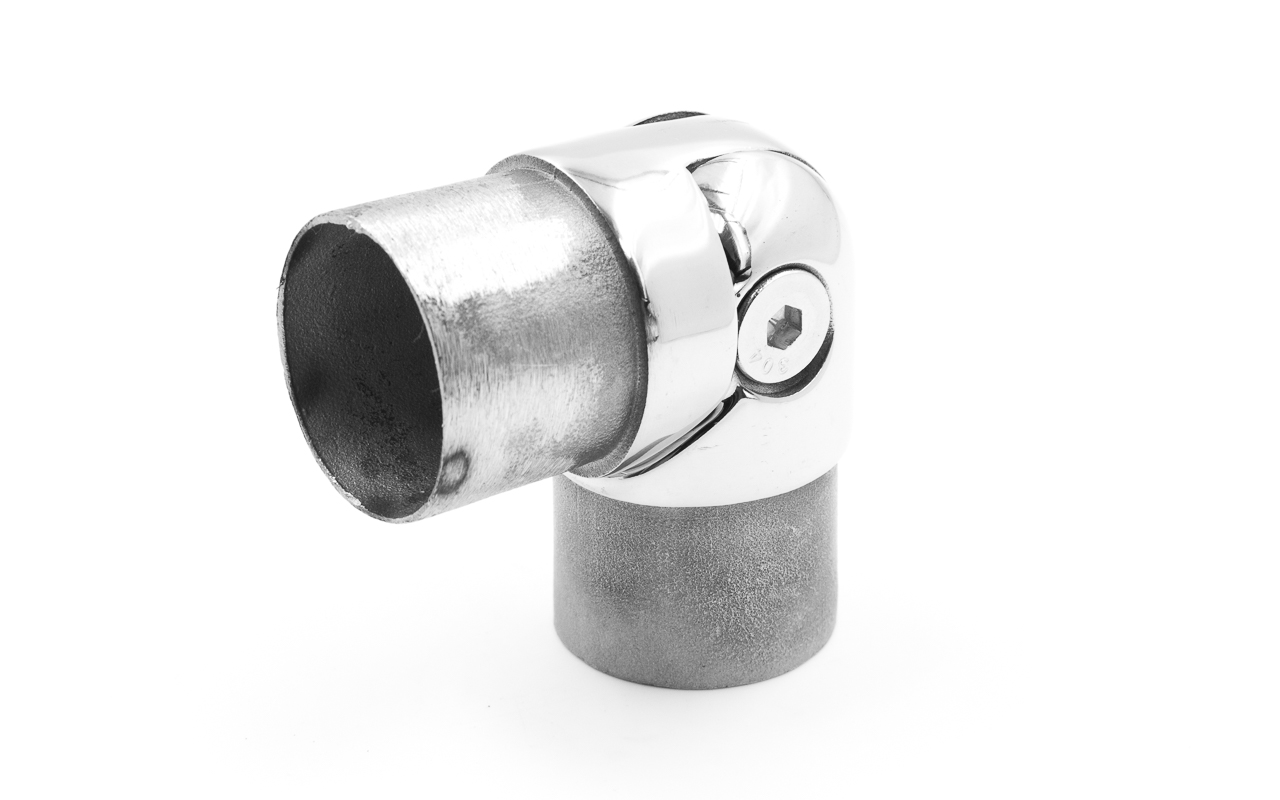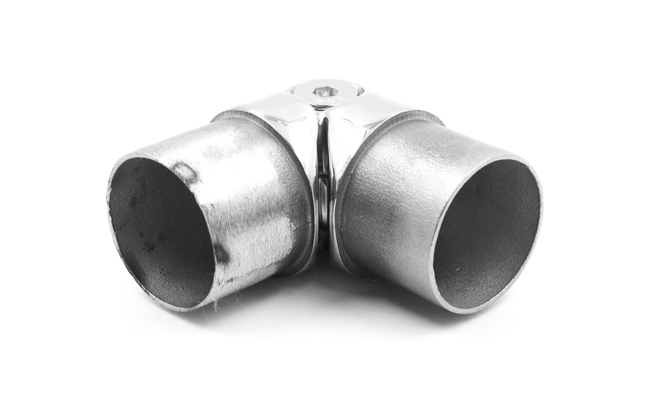 Применяется во время монтажа ограждений для установки поворота нержавеющих перил в диапазоне от 85 до 215 градусов. Состоит из двух частей со специальными фасками с каждой стороны, соединенных между собой винтом. Фитинг литой, отличается повышенной износостойкостью и имеет хорошие механические характеристики. Деталь сделана со специальным запасом по толщине, чтобы можно было использовать клеевое соединение.