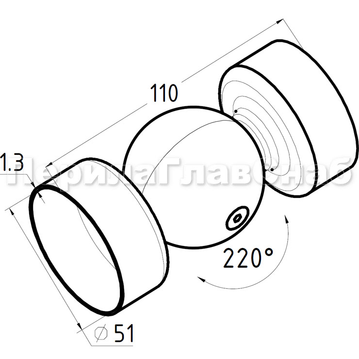 Поворот деревянного поручня, шаровый, под Ø50.8 мм k053-2