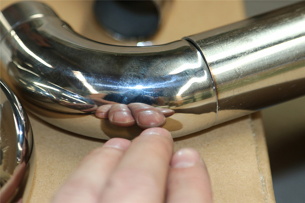 Отвод под поручень диаметром Ø38.1х110х1.5 мм, 90°. Деталь литая, полированная 600 Grit, с двумя установочными кольцами. Марка стали - AISI 316