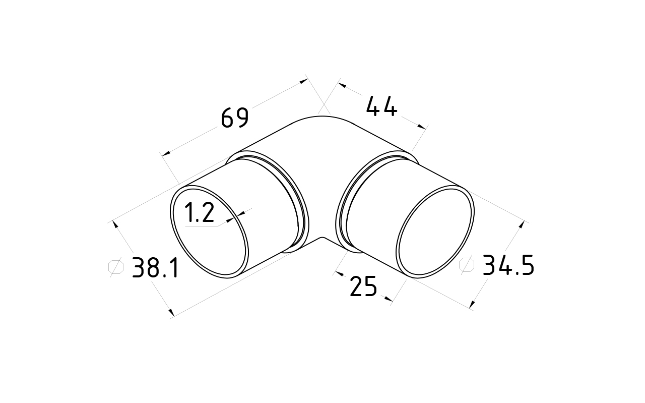 Диаметр 38.1 мм с легкостью позволяет использовать этот угольник из нержавеющей стали при монтаже ограждений пандусов и устройств для инвалидов по ГОСТу, как наиболее оптимальный для удобного хвата человеческой руки