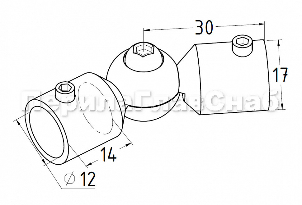 Поворот ригеля Ø12 мм, регулируемый, шаровый, внешний AISI 304 #600 k253