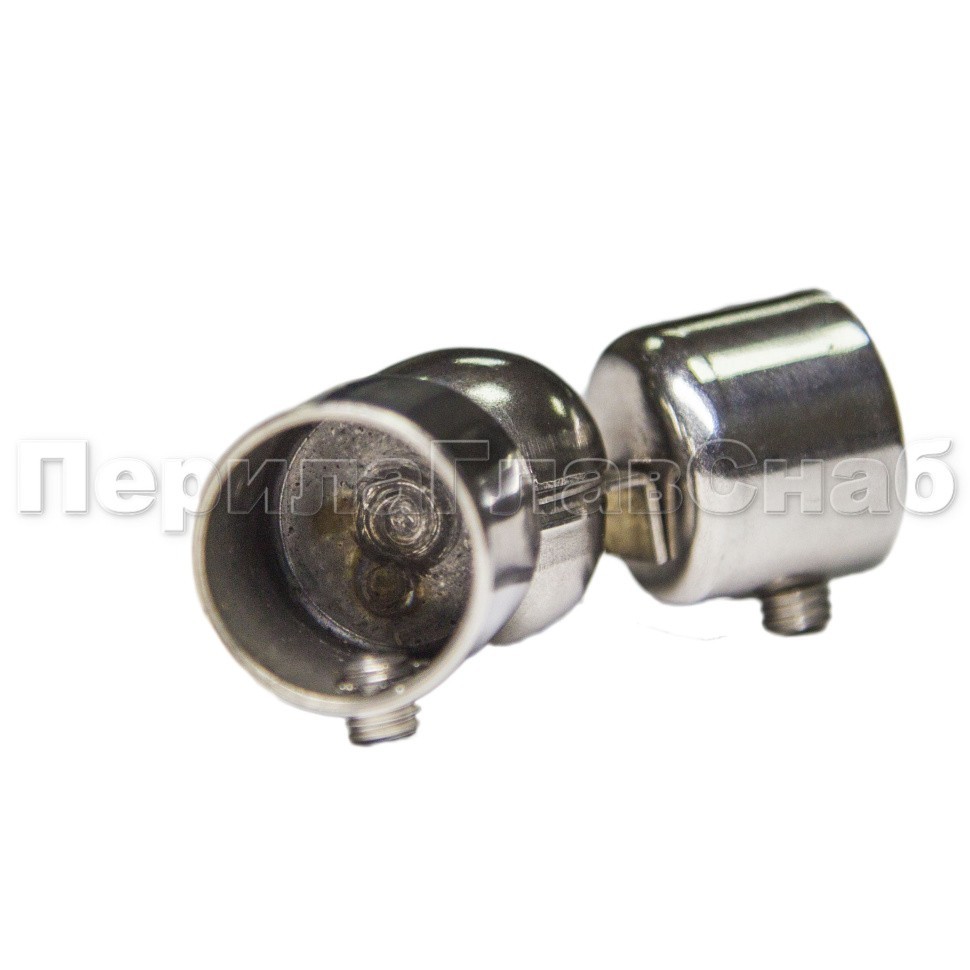 Деталь используется монтажниками для завязки нержавеющих ригелей на поворотах ограждения. Для применения на уличных конструкциях лучше подварить фитинг к трубке тетивы ригеля, дабы не провоцировать вандалов расхитить комплектующие с готового ограждения. Патрубки фитинга надеваются прямо на ригель и фиксируются штатными стопорными винтами, входящими в комплект поставки.