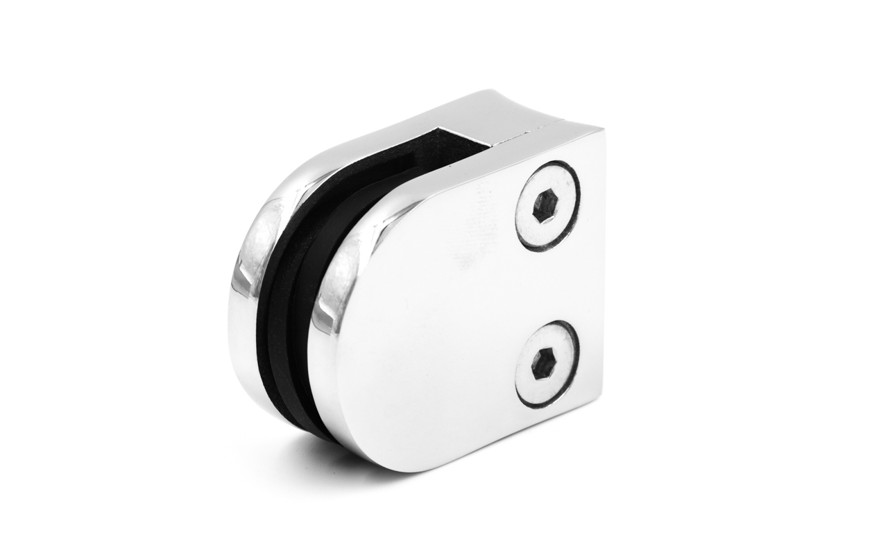 Стеклодержатель литой с вставками под стекло 8-10 мм, закругленный под Ø50.8 мм, 40х22х50, полированный. Марка стали - AISI 304