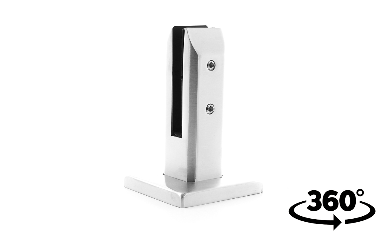 Стеклодержатель напольный 45х50х160 мм, литой, плоский, для стекла 10-12 мм, без сверления, нержавеющая сталь AISI 304, шлифованная. Так же вам понадобиться для крепежа потайной винт под шестигранник k601-19-120.
