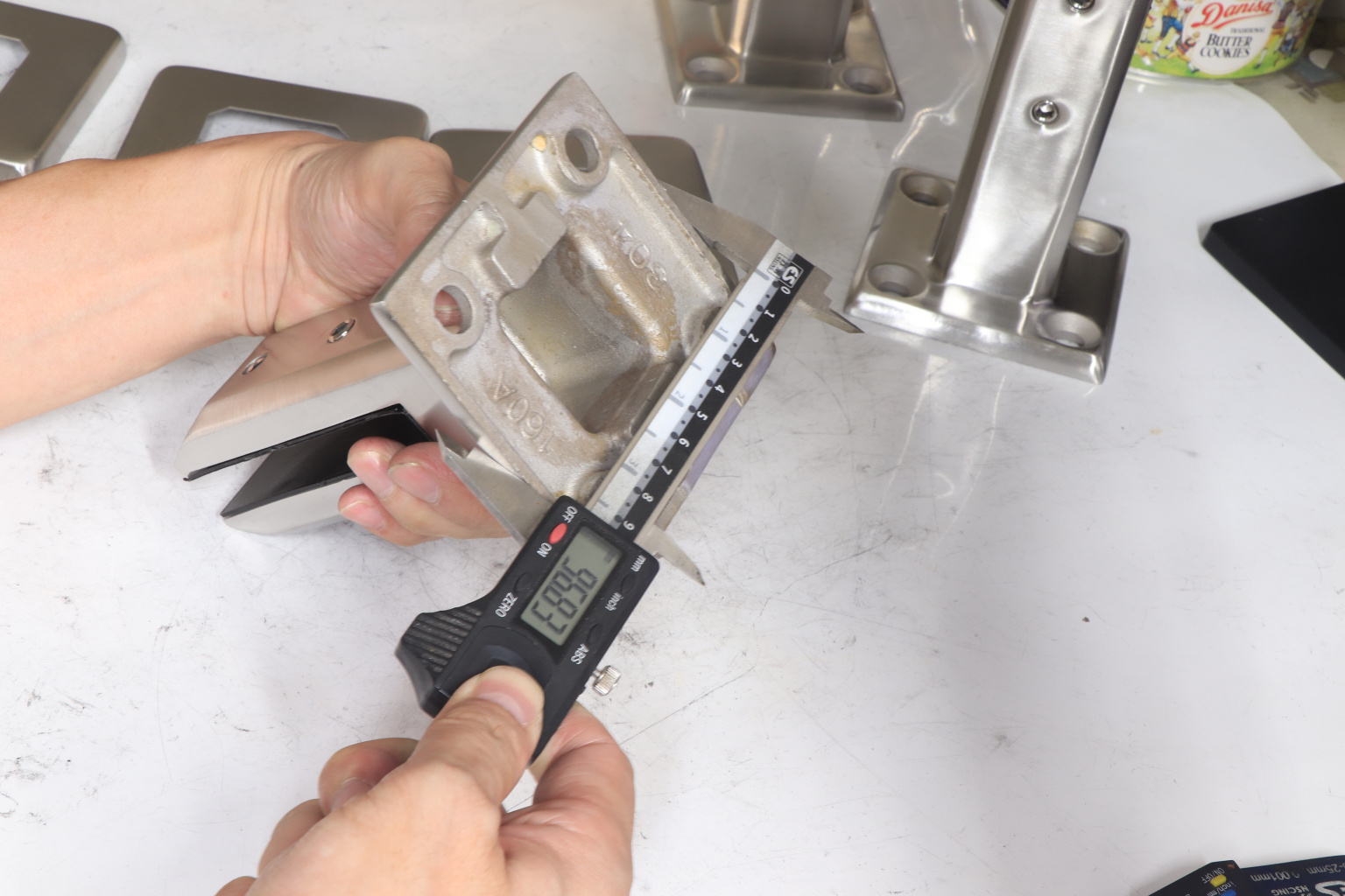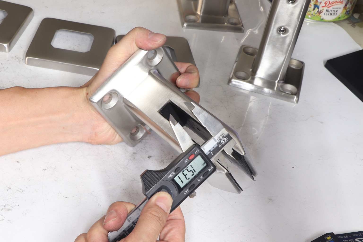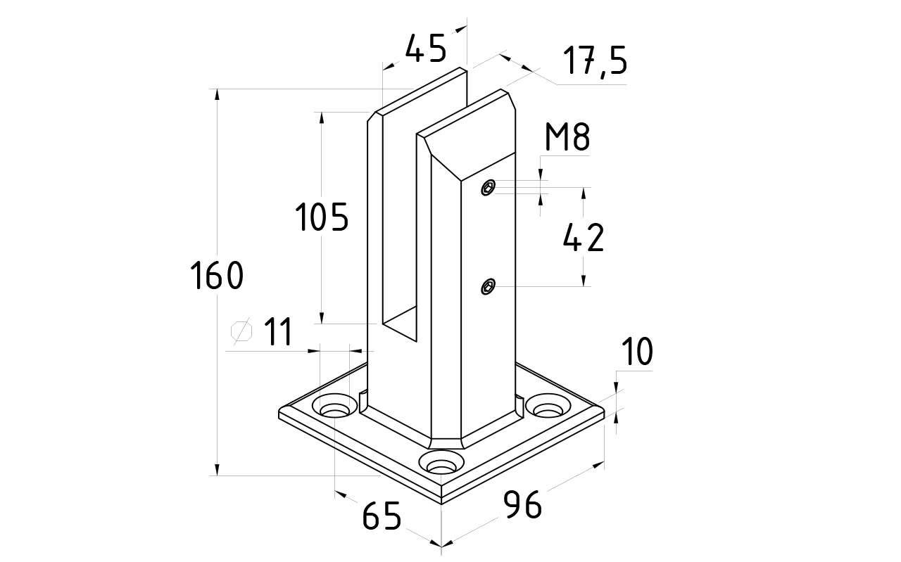 Стеклодержатель напольный 45х50х160 мм, литой, плоский, для стекла 10-12 мм, без сверления, нержавеющая сталь AISI 304, шлифованная k275-7