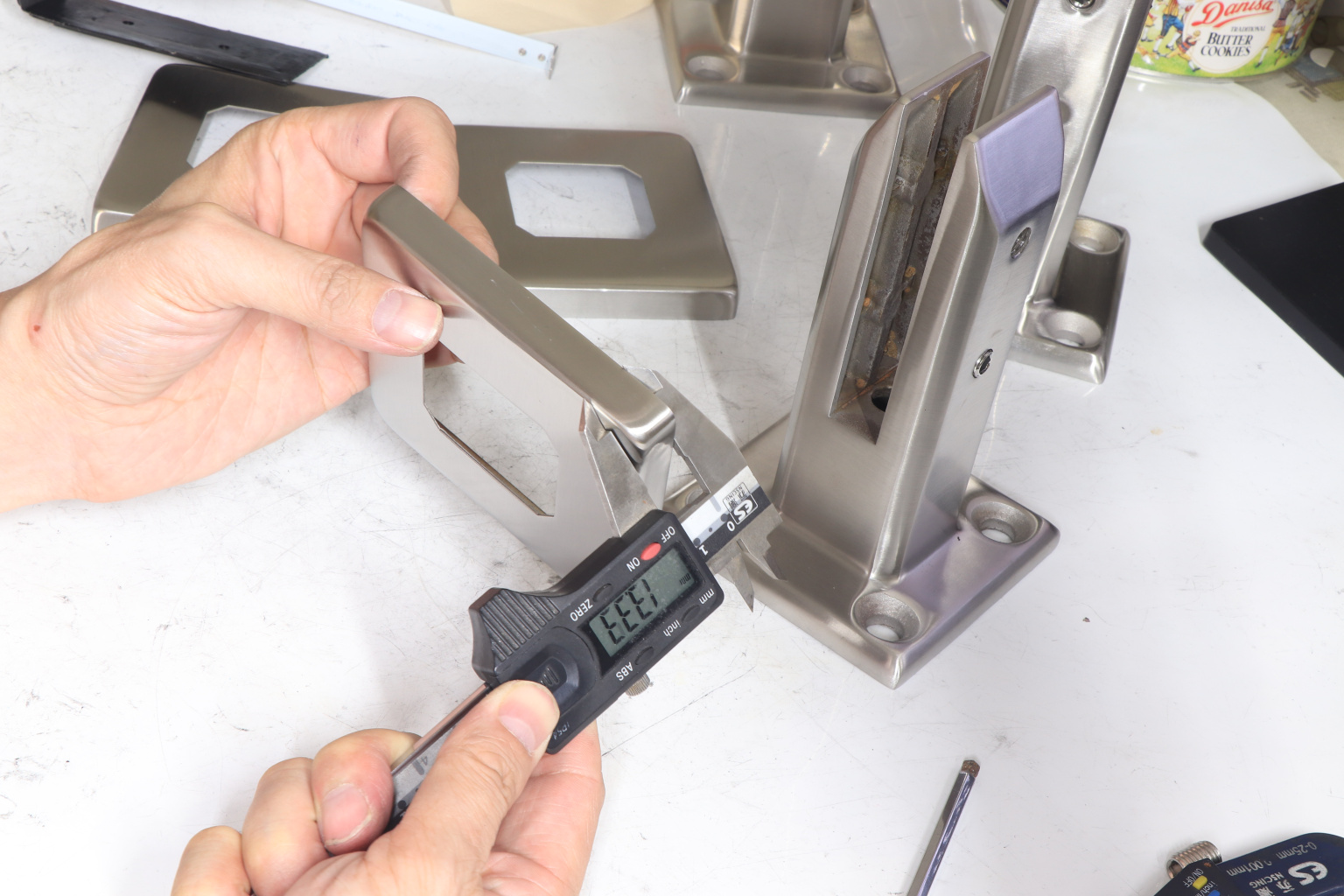 Держатель крепится в пол на 4 анкера или шпильки. Для этого предусмотрено 4 отверстия диаметром 10мм-12мм. Стекло зажимается в стеклодержатели с помощью двух фиксирующих винтов. Высота ограждения должна быть не более 1200 мм от пола.