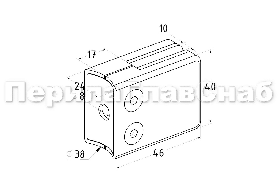Стеклодержатель штампованный, под стекло 10 мм (5+5 мм), квадратный под стойку Ø38.1 мм (40х24х48 ) полированный AISI 304 k351-10