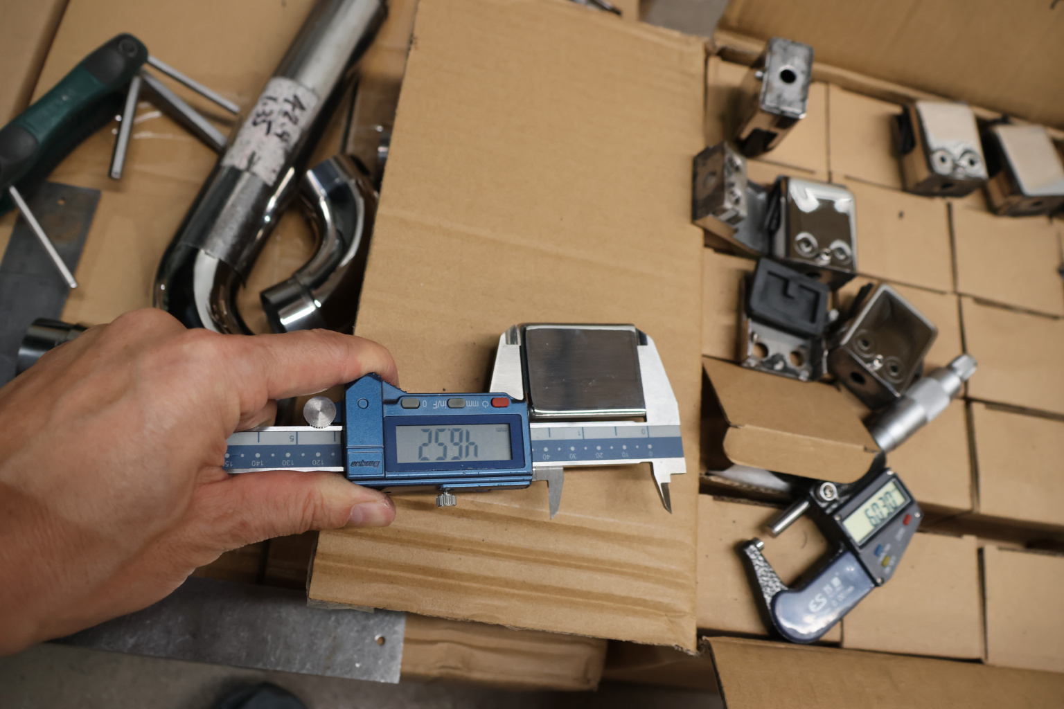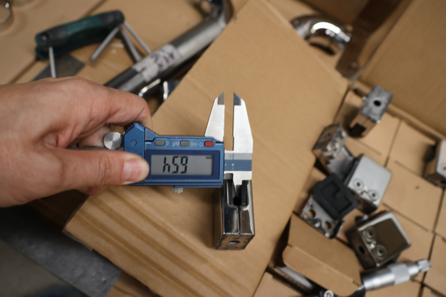 Наконечник палец на стойку из профильной трубы 40х40 мм, с регулируемым ложементом под поручень Ø50.8 мм, полированный, литой, облегченный нержавеющий AISI 304 k239-3 купить в Алматы