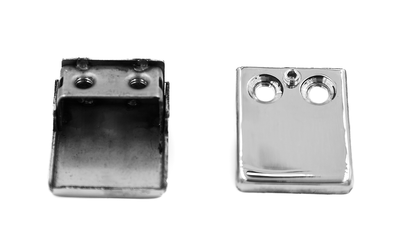 Стеклодержатель штампованный, под стекло 8 мм (4+4 мм), на плоскость 40х24х48 полированный (AISI 304) k352