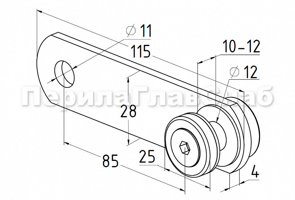 Центральным винтом стеклодержатель фиксируется на стойке, а стекла устанавливаются между стойками ограждения. Для стекла толще 12 мм нужно докупать более длинные винты М8.