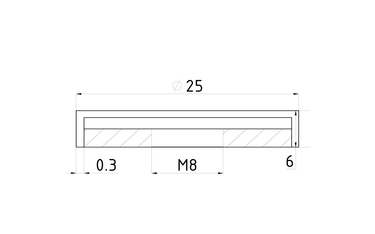 Ø25 мм, толщина 0.5 мм, высота 5 мм
