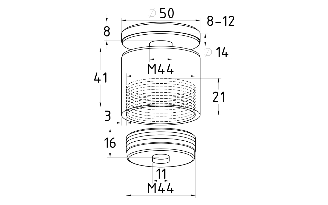 Точечный стеклодержатель для стеклянных стен, регулируемый, под стекло 8-12 мм AISI 304 #600 k085