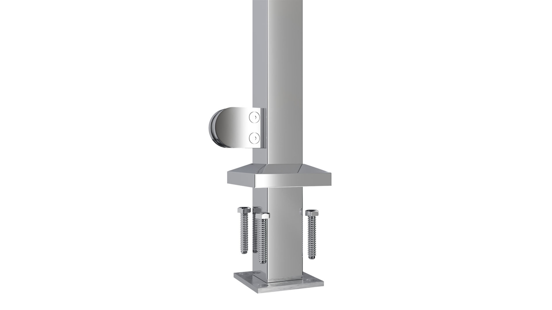 Стойка квадратная 40х40: 2 литых зажимных стеклодержателя, полированная, высота 950 мм (AISI 304) k745-L
