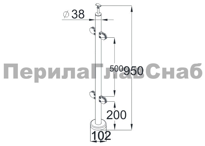 Cтойка круглая Ø38.1: 4 литых зажимн. стеклодержателя, полированная, высота 950 мм (aisi 304)