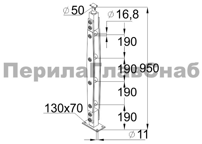 Стойка эксклюзивная с деревянной вставкой и 4 ригеледержателями, крепление в пол, нерегулируемый ложемент (aisi 304)