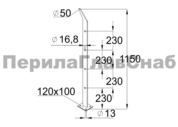 Стойка эксклюзивная с 4 отверстиями под ригель, крепление в пол, нерегулируемый ложемент (aisi 304)