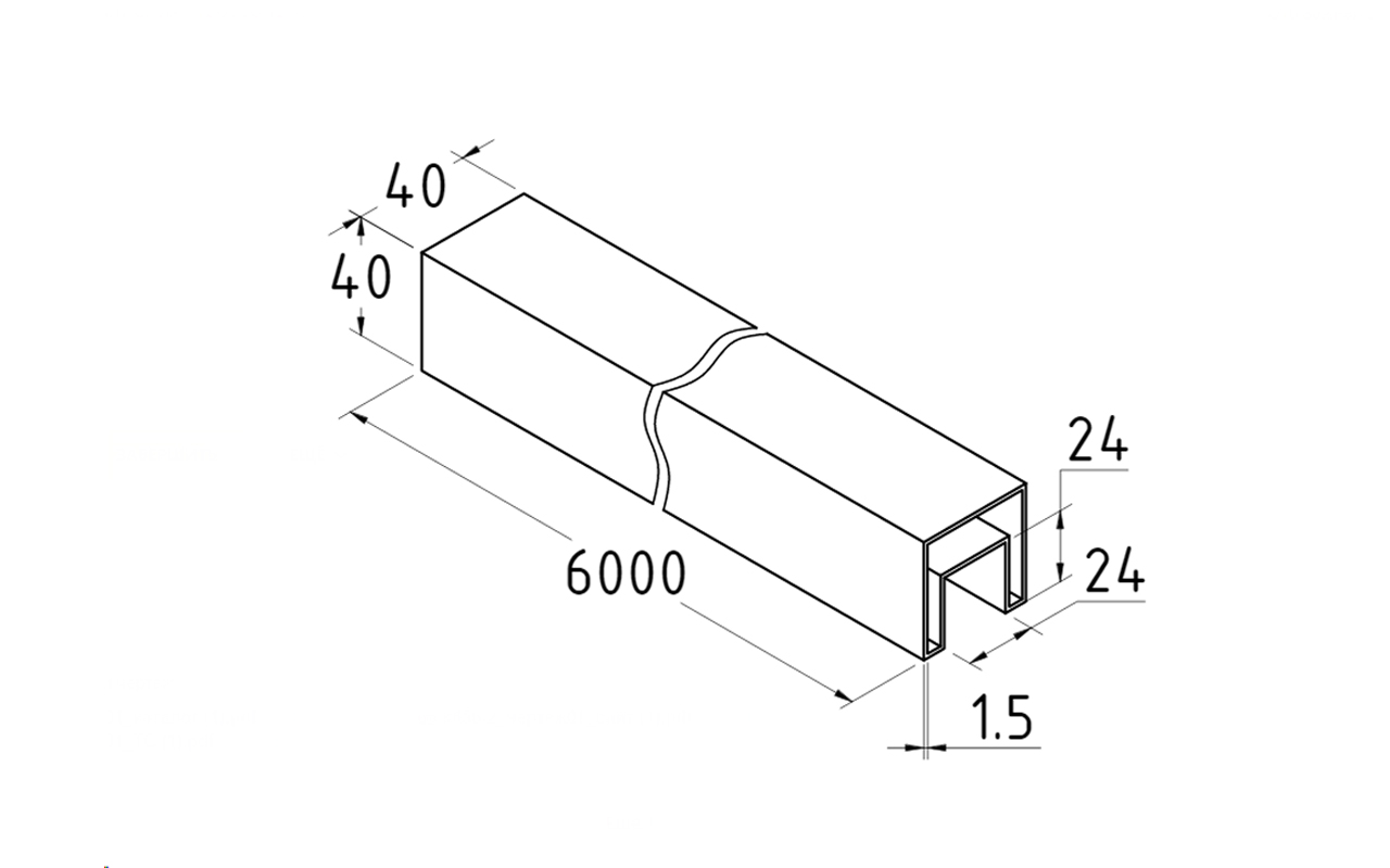 Размер — 40х40 мм, наличие паза размером 24 х 24, предназначение — для стекла. Труба шлифованная, изготовлена из нержавеющей стали марки AISI201.