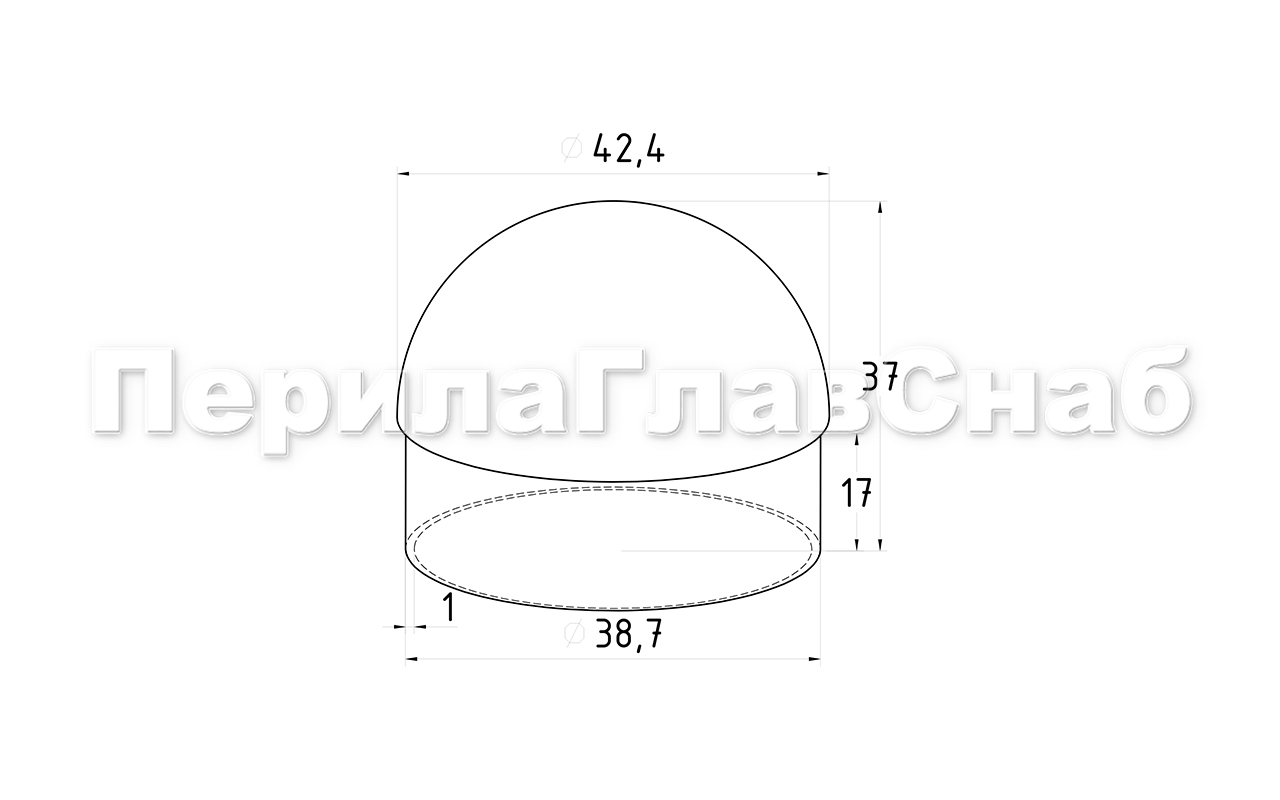 Заглушка литая, полированная, сферическая для трубы диаметром 42.4х1.5 мм. Марка стали - AISI 304