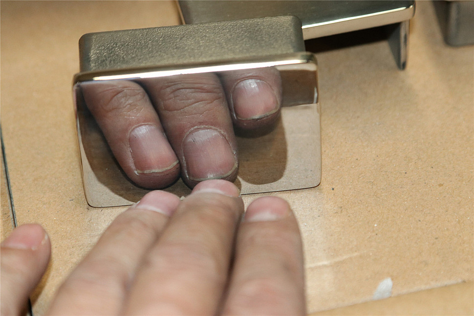 Заглушка для поручня с пазом 40х60 мм. Деталь полированная, марка стали - AISI 304