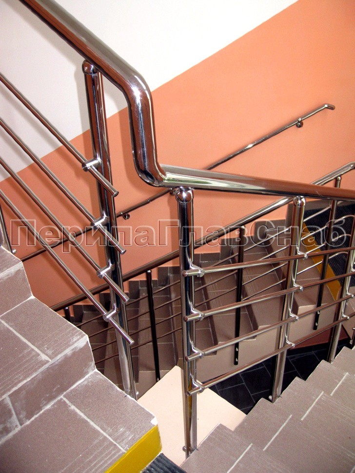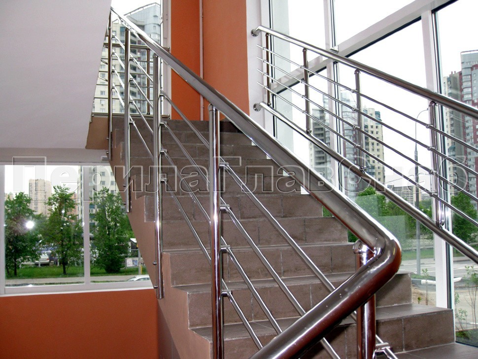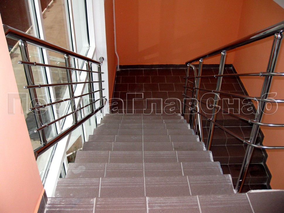 Крепление стоек было торцевое, так как по просьбе заказчика необходимо было максимально увеличить полезную ширину марша, согласно строгим требованиям безопасности.