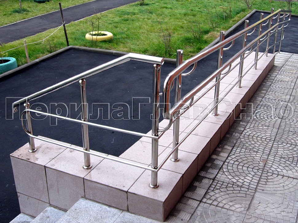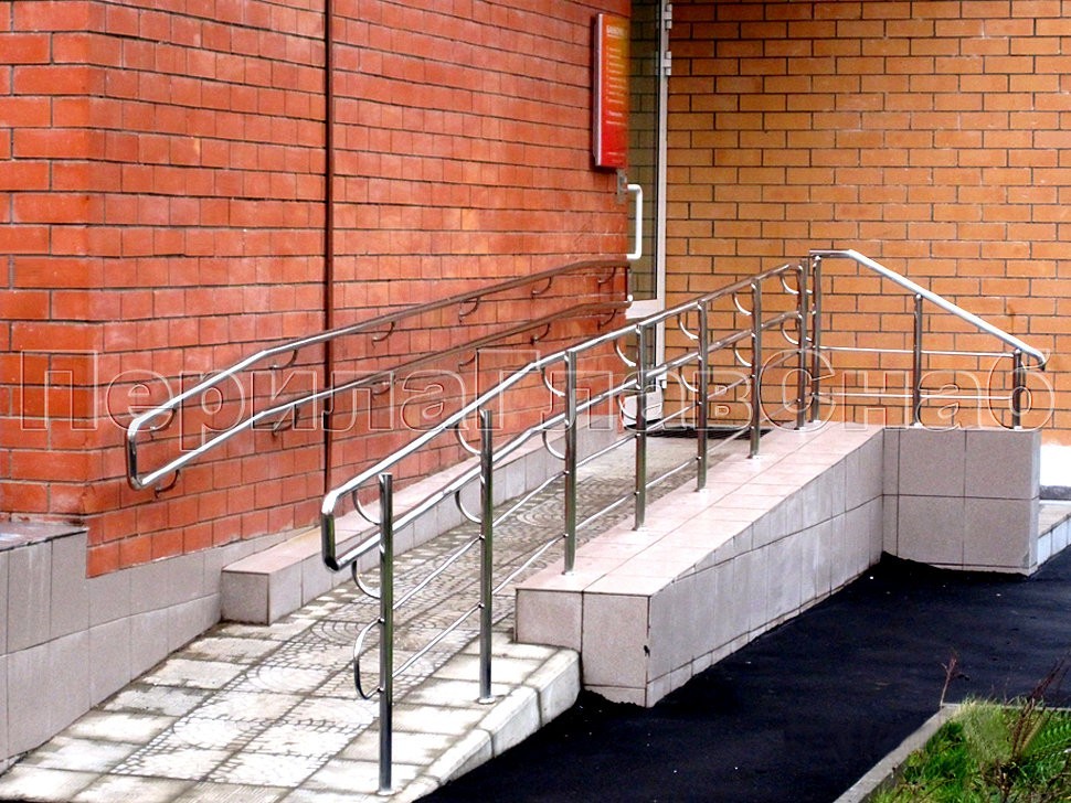 У входа в здание Сбербанка на ул. Новорогожская был установлен сложный комплекс из ограждений входной группы и пандуса для инвалидов со специальной системой поручней из нержавеющей стали от компании «ПерилаГлавСнаб».