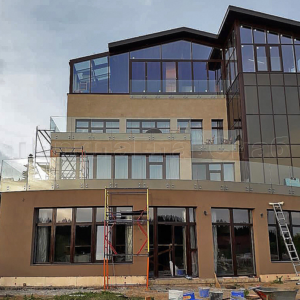 Шикарный проект дома в резиденции Ангелово, которая расположена в живописном месте рядом с федеральным Красногорским лесопарком. На балконах и террасе мы сделали стеклянные ограждения на точечном креплении. Благодаря такому конструктиву в доме будет много света и солнца. И конечно же всегда открыт прекрасный вид на лесную зону.