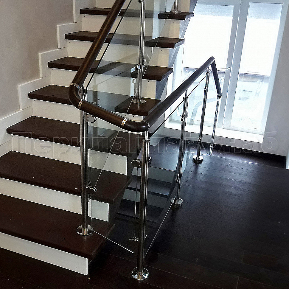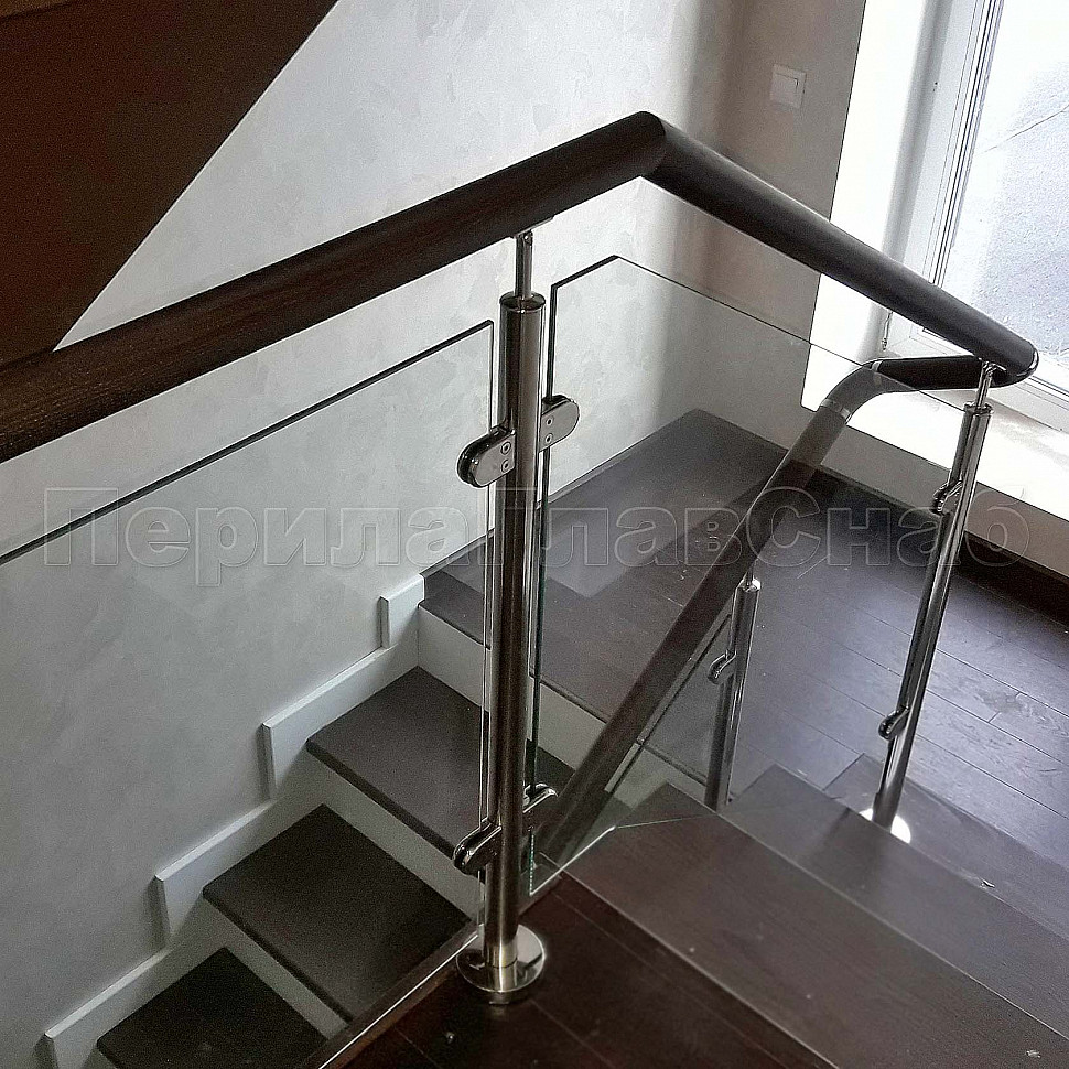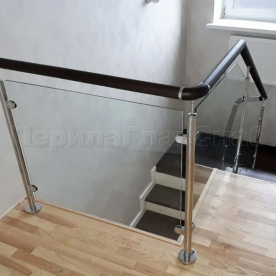 В поселке "Котово" Истринского района установили именно такие стеклянные ограждения на лестницу в частный дом. Дубовый поручень покрасили в цвет ступеней и получился вполне законченный вариант лестницы. Конструктив: ограждения из полированной нержавеющей стали внутренние с прозрачяным стеклом, толщиной 8 мм, с еврокромкой и притуплением углов. Поручень из массива дуба Ø49мм.