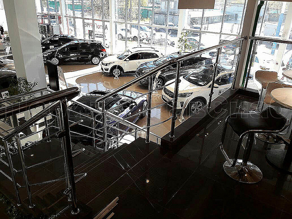 Блестящие шикарные перила установили в автосалоне Автогермес.