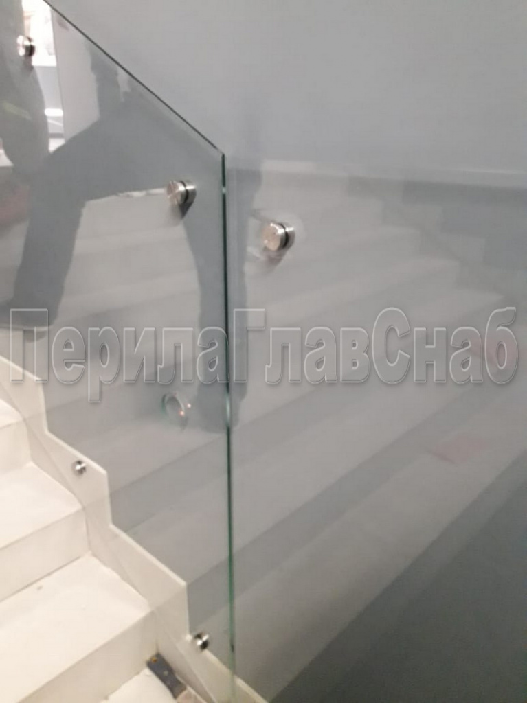 Конструктив: профильная труба 40х40 мм с пазом и встроенной ЛЭД подсветкой, пристенные держатели, стекло