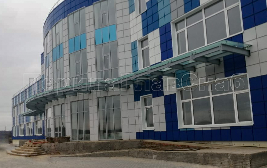 Все элементы крепления собственного производства. Выполнены из нержавеющей полированной стали повышенной коррозионной стойкости AISI 316. Идеально отлаженная работа отдела логистики позволила безошибочно произвести монтаж , т.к. объект расположен далеко от Москвы. А значит права на ошибку не было. Монтажные бригады трудились в двадцати градусный мороз в две смены, под чутким руководством прораба. Что позволило обеспечить сдачу объекта в самые сжатые сроки. А это и было основным требованием заказчика. Трудным был измерительный процесс инежера-конструктора для дальнейшего заказа стекла. Нам пришлось дополнительно возвести конструкцию высотой пять метров напротив здания. Что-бы была возможность установить измерительный прибор для осуществления замера. На завершающем этапе нами было предложено и пере согласовано изготовить отливы. Заменить стандартный силиконовый на нержавеющий.  Стоимость кв. метра  42 758,00 руб