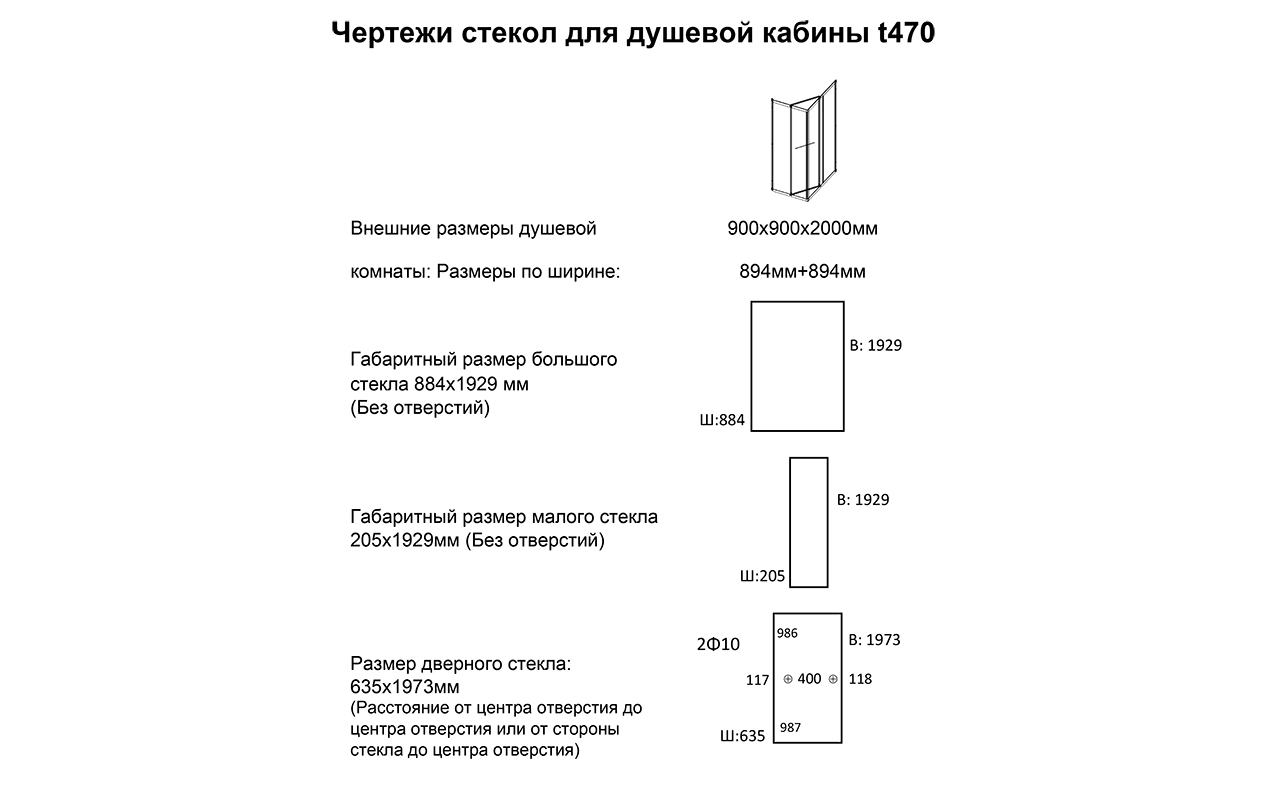 Из трех стекол душевой отверстие требуется только в том стекле, где устанавливается ручка. Диаметр отверстий - 10мм.