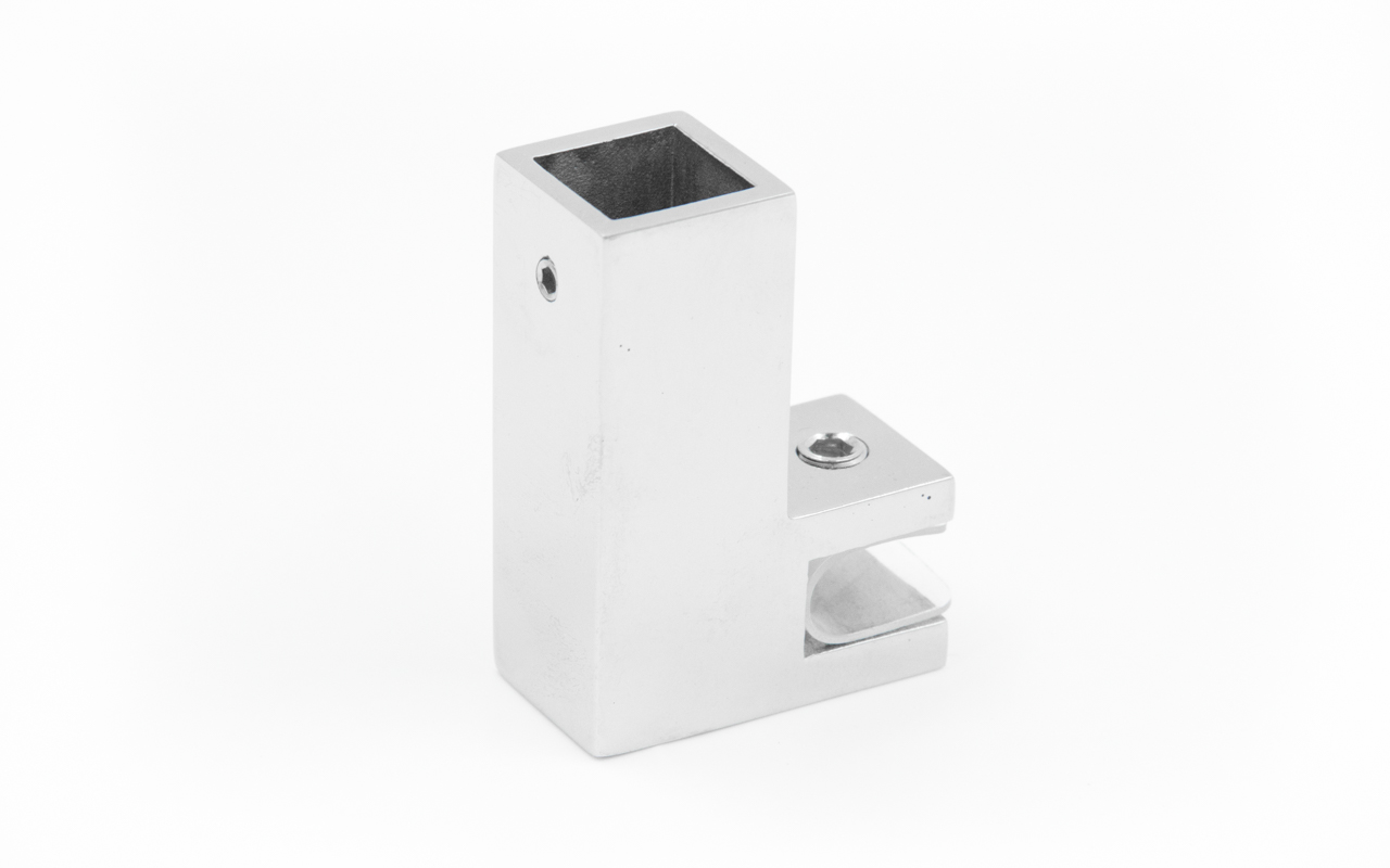 Коннектор предназначен для крепления трубы 15х15 мм к стеклу под углом 90º при монтаже штанг верхней обвязки душевых кабин.