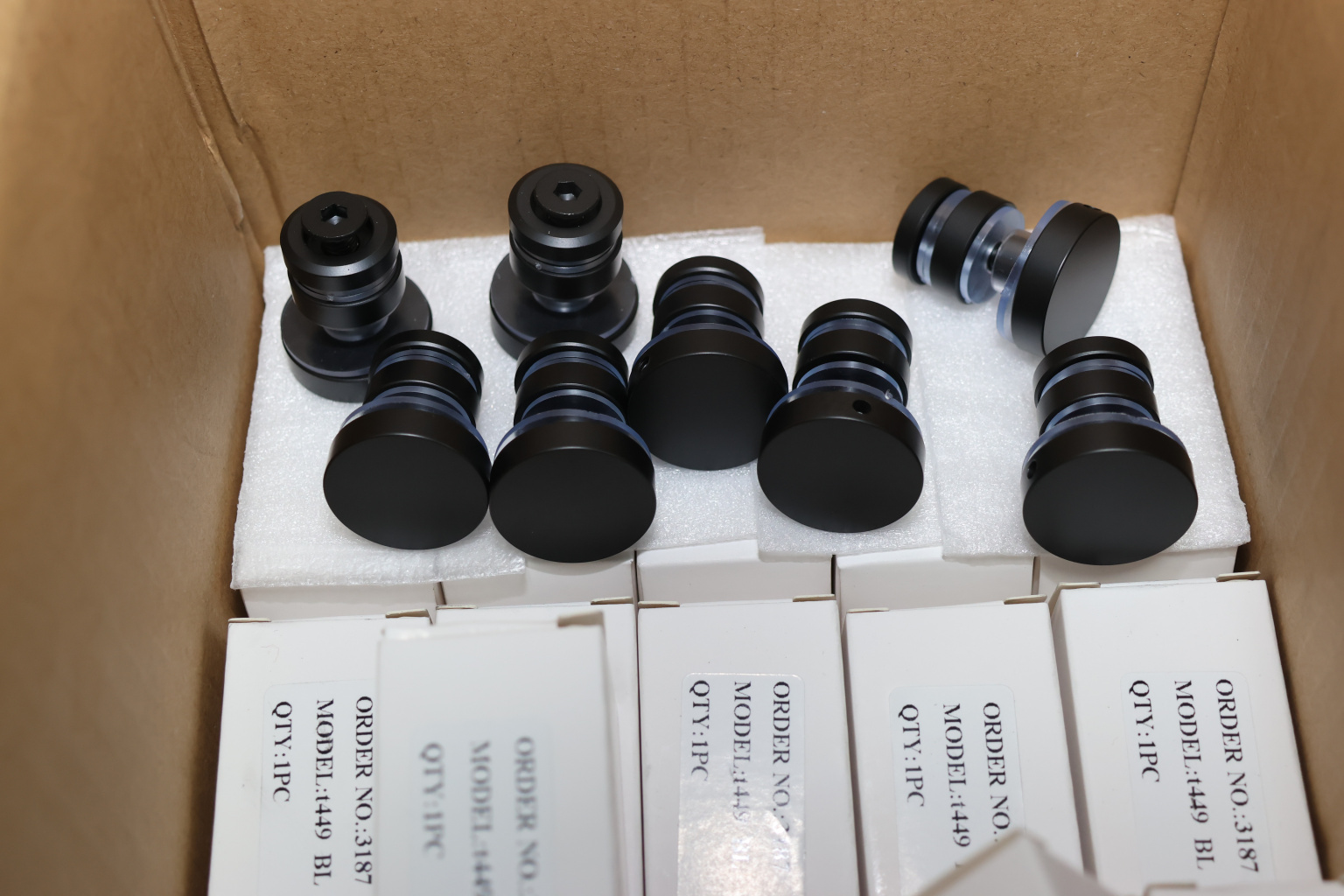 Крепление трека 30х10 к стеклу, марка стали- AISI 304, поверхность- черная