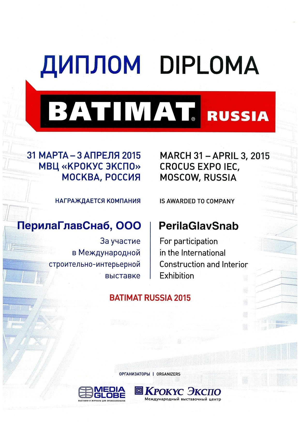 Группа компаний "ПерилаГлавСнаб" приняла участие в Международной строительно-интерьерной выставке BATIMAT RUSSIA 2015.