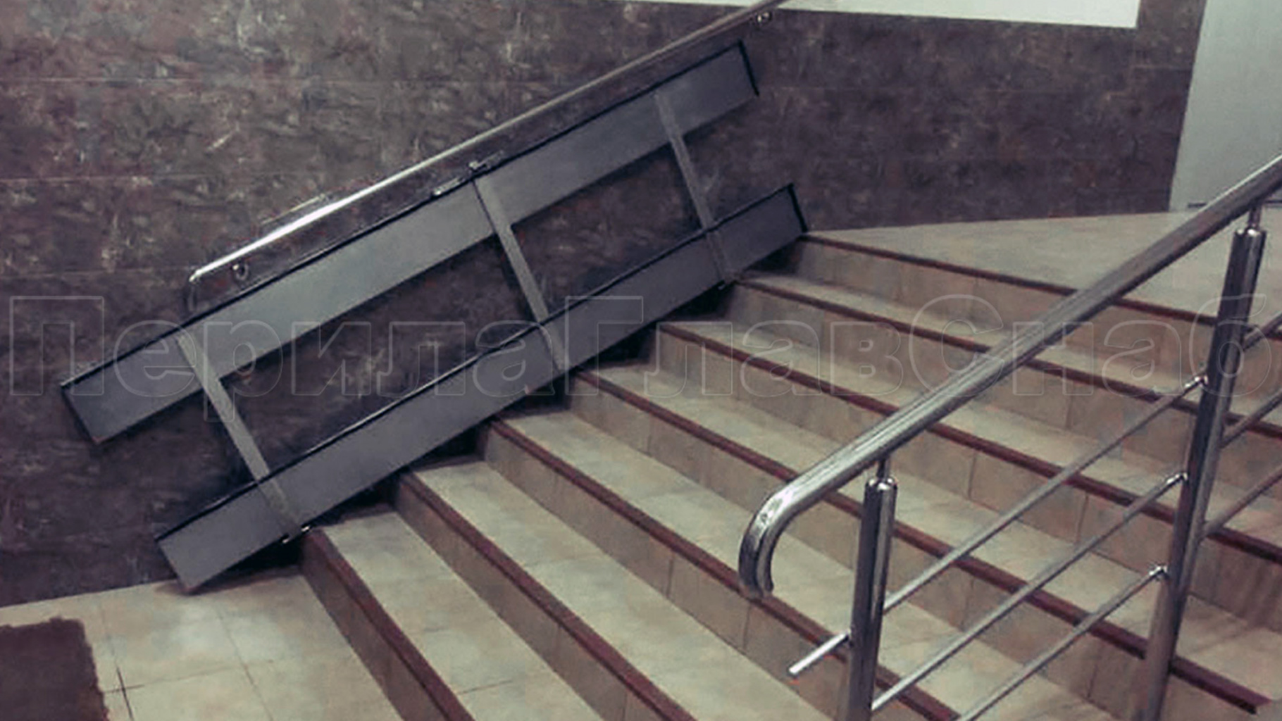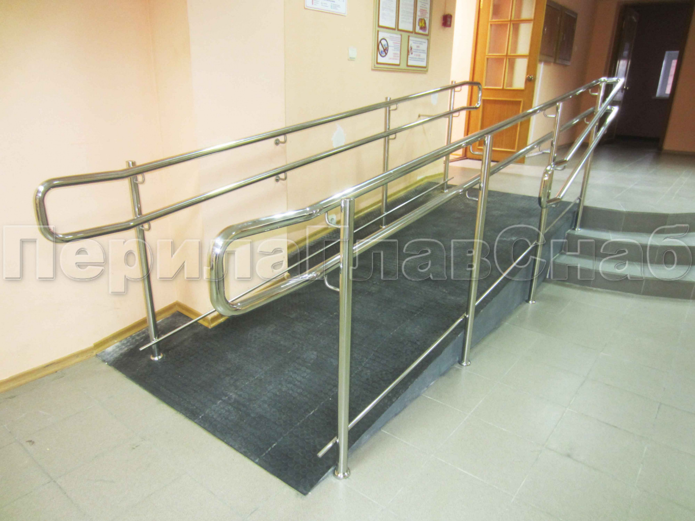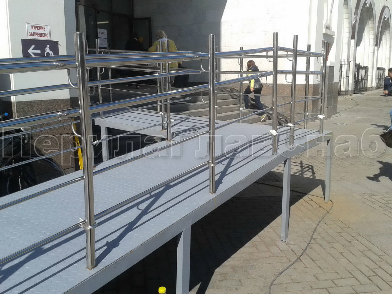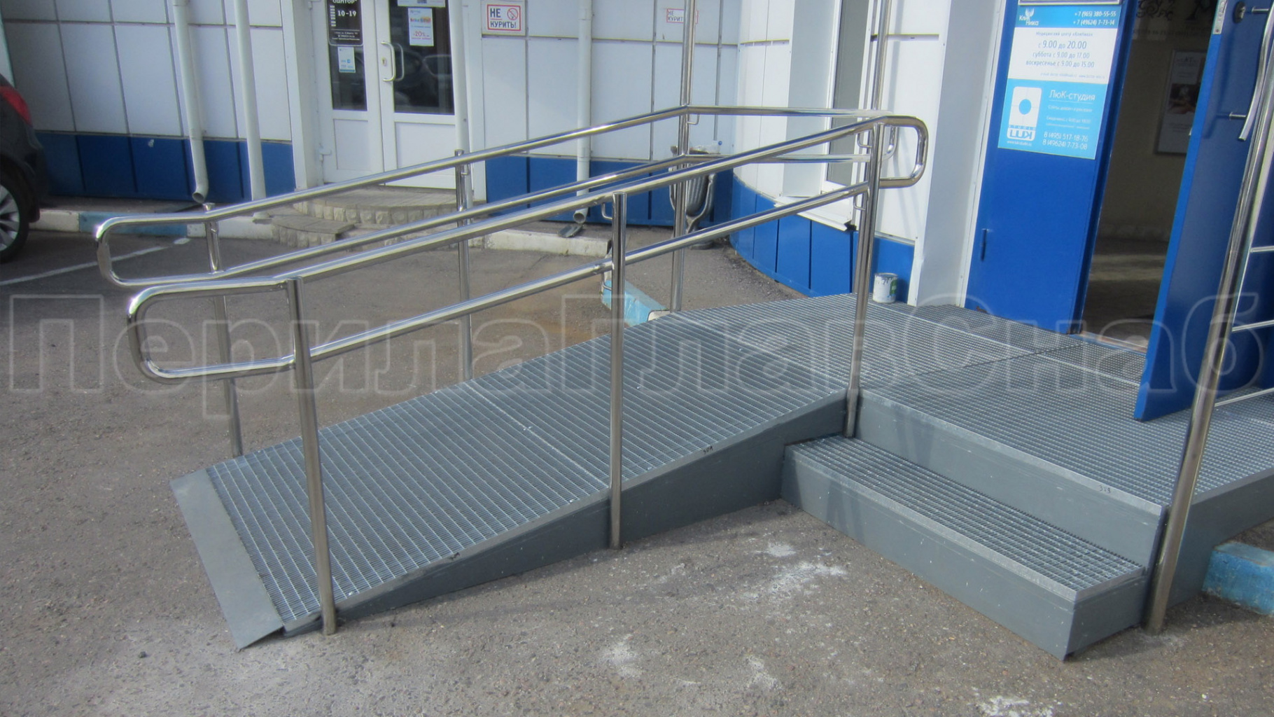 Пандус "П-образный", функцию нижнего ограничителя выполняют 2 ригеля д.16 мм, соединенные между собой в начале и в конце линии ограждения