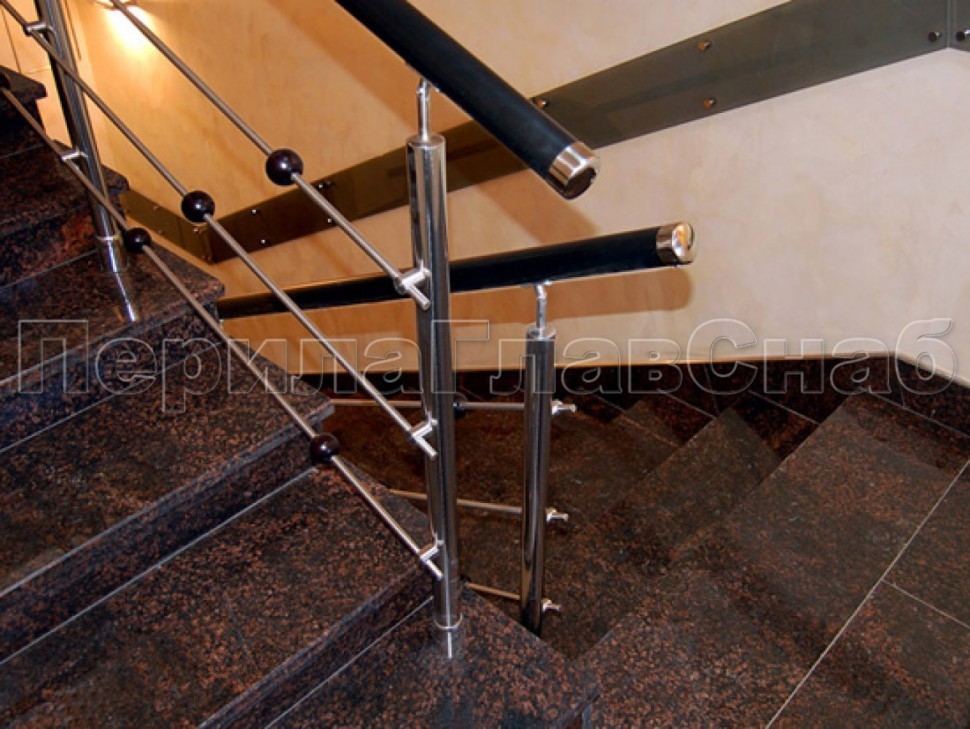 Нержавеющие ограждения без ригелей с круглым поручнем и стойками с деревянными вставками