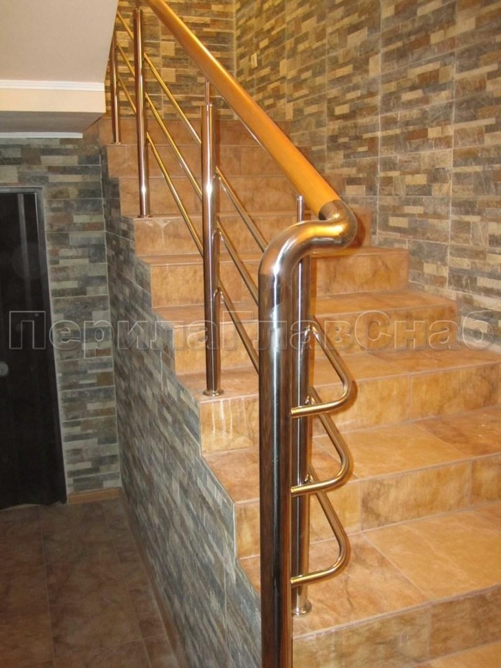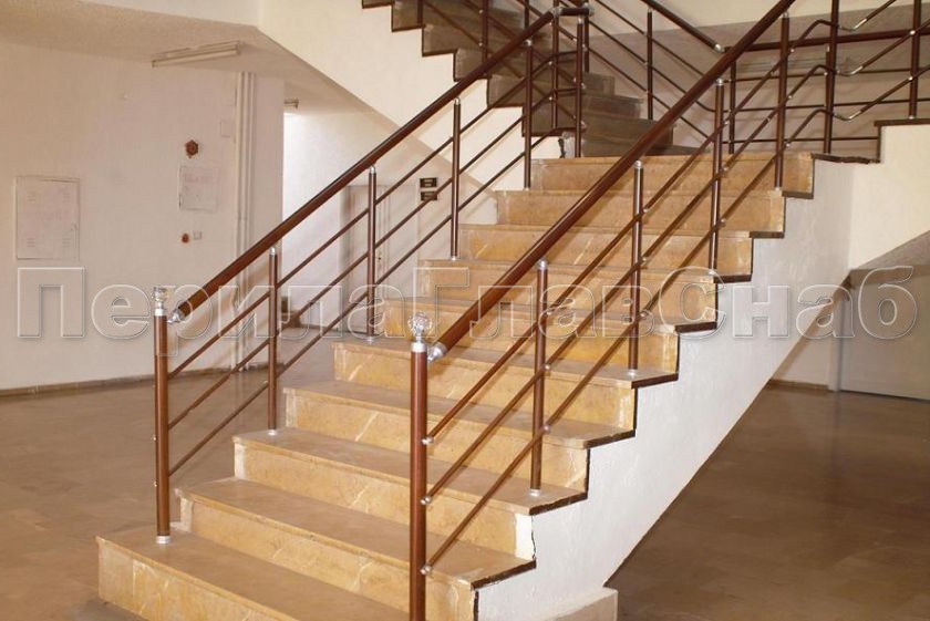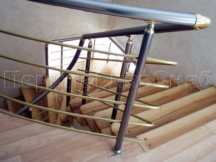 Лестничное ограждение с тремя ригелями и поручнем из латуни