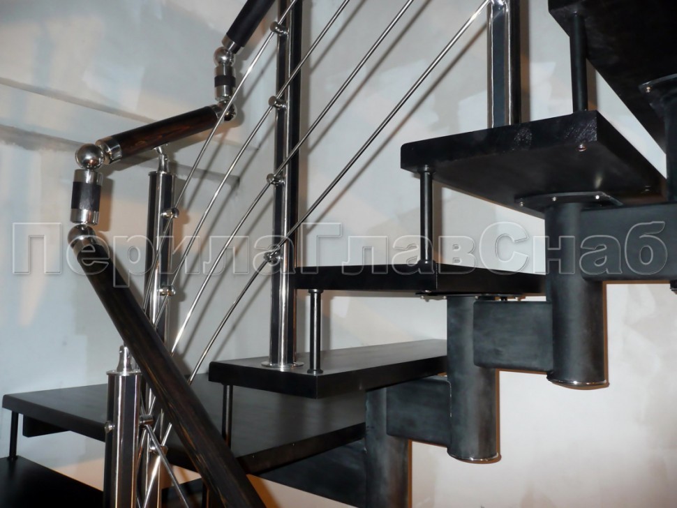 Ограждения с двумя стойками в каждую ступень без ригелей