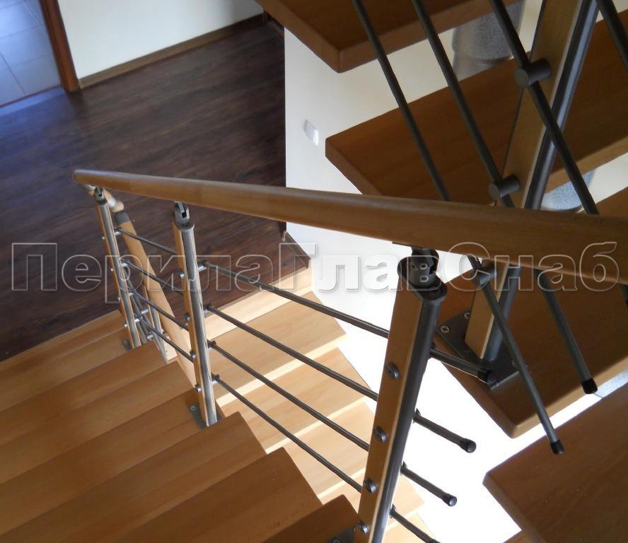 Ограждения с двумя стойками в каждую ступень с деревянным поручнем и без ригелей