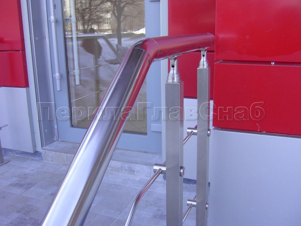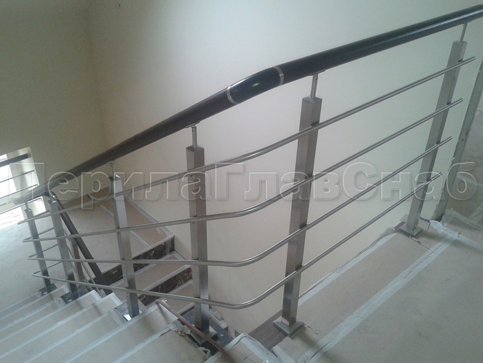Четыре ригеля на держателях, квадратный поручень и квадратные стойки