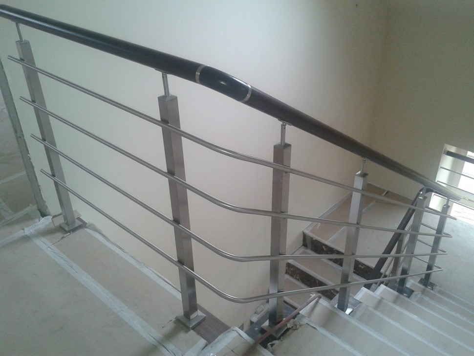 Четыре ригеля на сварке, круглый поручень и квадратные стойки