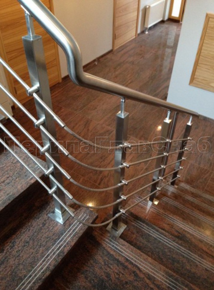 Ограждения из нержавейки. Заполнение из 2х тросиков. Квадратные стойки